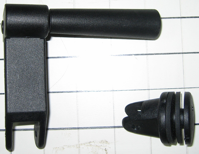 Plastic window hold open LH (Handle points to the left). (This LH handle may be used on the right side of the cab in some cases). Note that this window hold open part number does NOT include the pull ring connecting pin, P/N