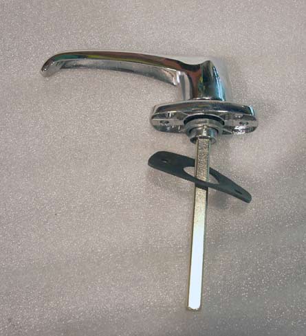 Locking keyed handle, zinc plated - The shaft length from the collar to the end of the shaft is 3-5/8 inches (or 4" from the tip of the shaft to the face of the flange mounting surface), and the width of the shaft is a 5/16 inch.